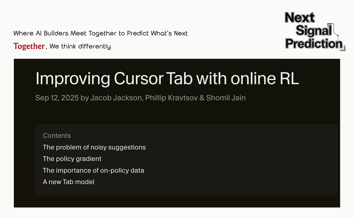 Every time you tab-complete or reject a suggestion, you’re training tomorrow’s model. That’s remarkably tight feedback: from user action to model update in hours, not months.
