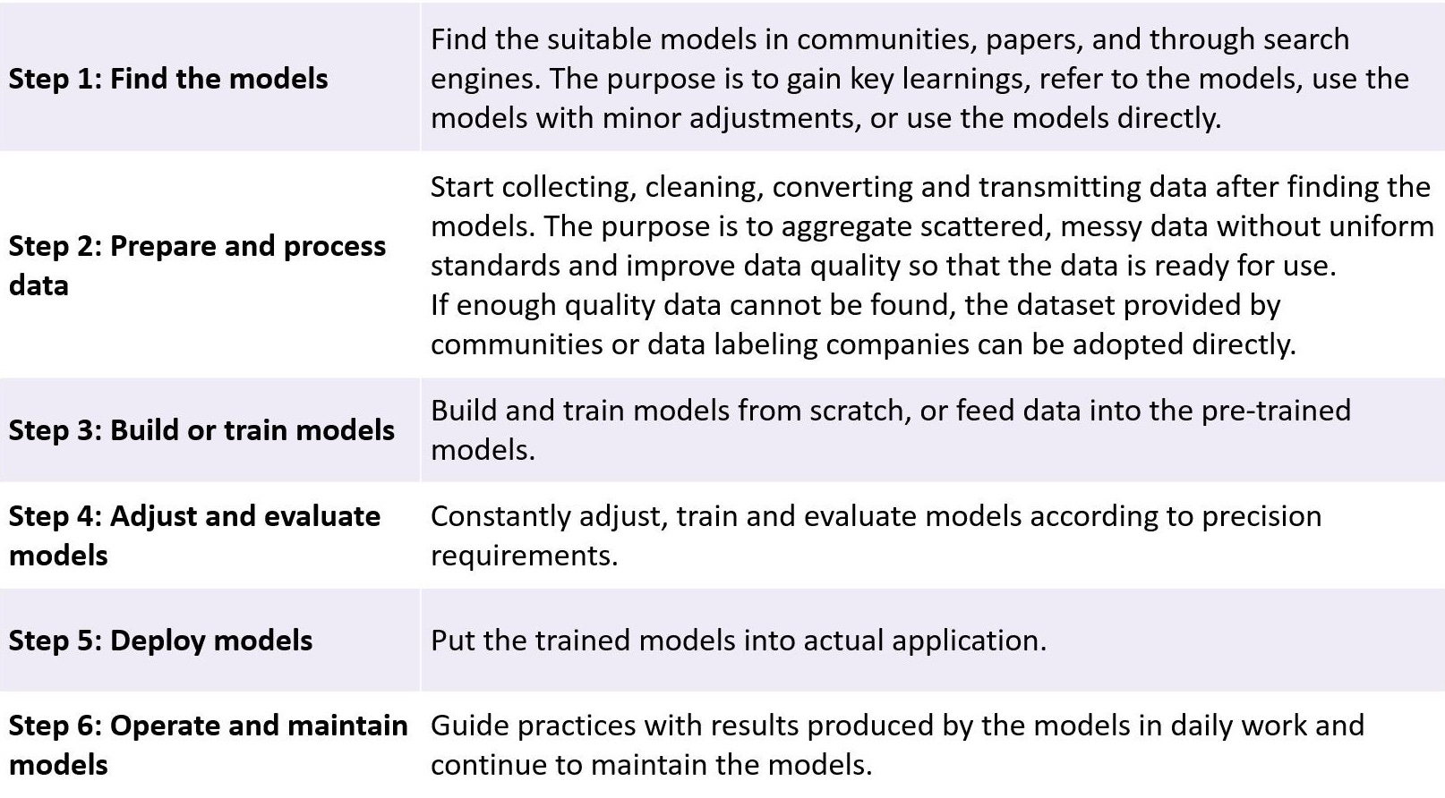 When users are working on ML, they first need to look for models that fit the target application scenarios and see if there are ready-to-use models or models that can be used with minor adjustment. For users not using pre-trained models, they can keep abreast of the latest developments in the industry and learn from other people's models.